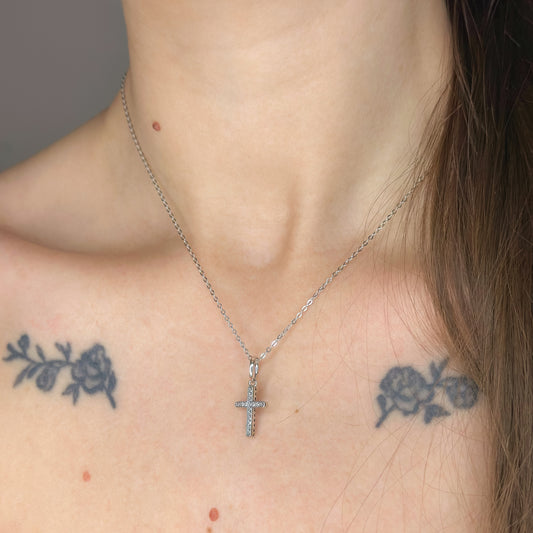 Sidabrinis rodžiuotas kryželis su cirkoniais ir grandinėle