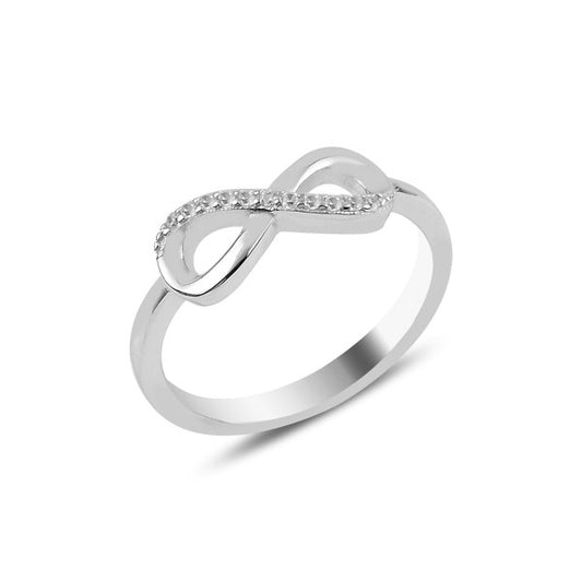 Sidabrinis rodžiuotas žiedas begalybė su cirkoniukais