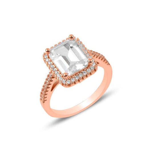Sidabrinis paauksuotas žiedas su stačiakampe cirkonio akute