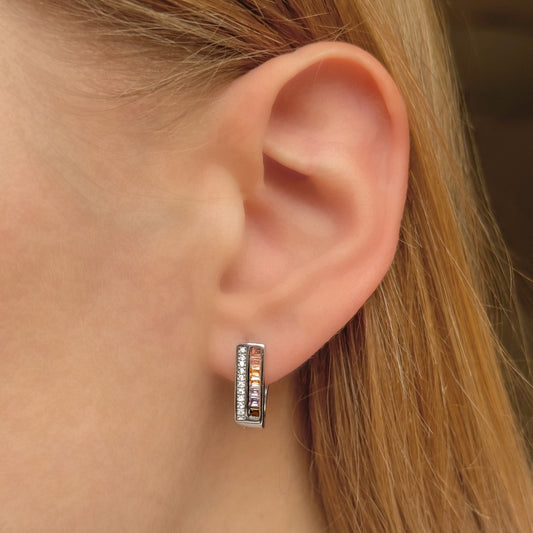 Sidabriniai auskarai su spalvotais ir baltais cirkoniais angl. užsegimu