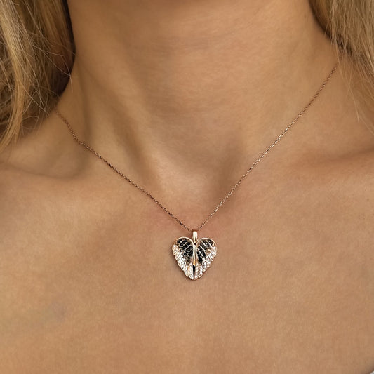 Sidabrinis paauksuotas pakabukas su grandinėle "Wings & Heart"