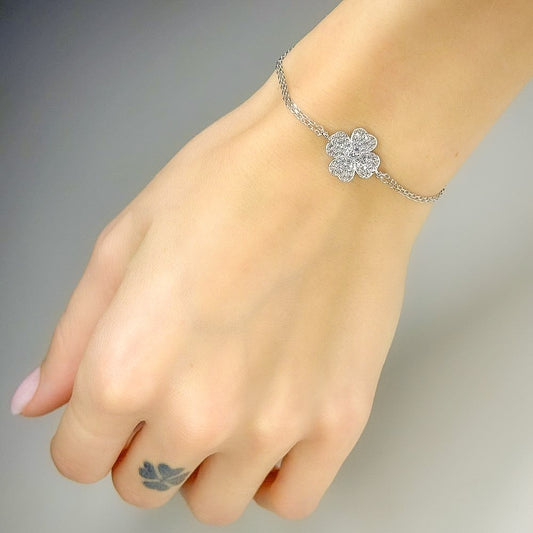 Sidabrinė rodžiuota Tennis apyrankė "Dobilas"