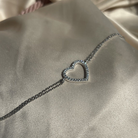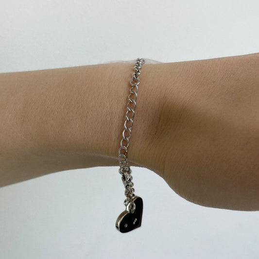 Sidabrinė rodžiuota apyrankė su kabančia širdele