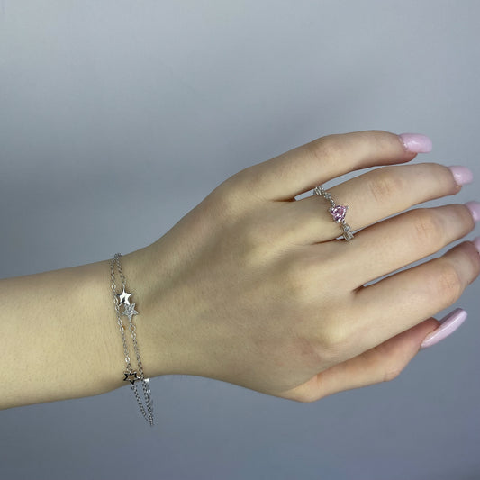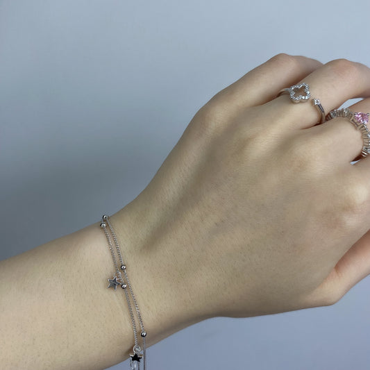 Sidabrinė rodžiuota dviejų gijų apyrankė "Stargirl"