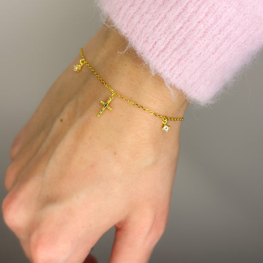 IšparduotaSidabrinė paauksuota apyrankė su cirkoniais