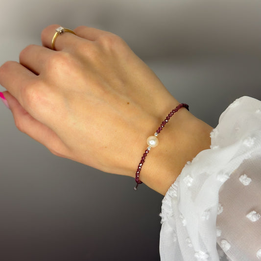 Įvairių spalvų siūlo apyrankės su tikru perlu ir sidabriniais karoliukais