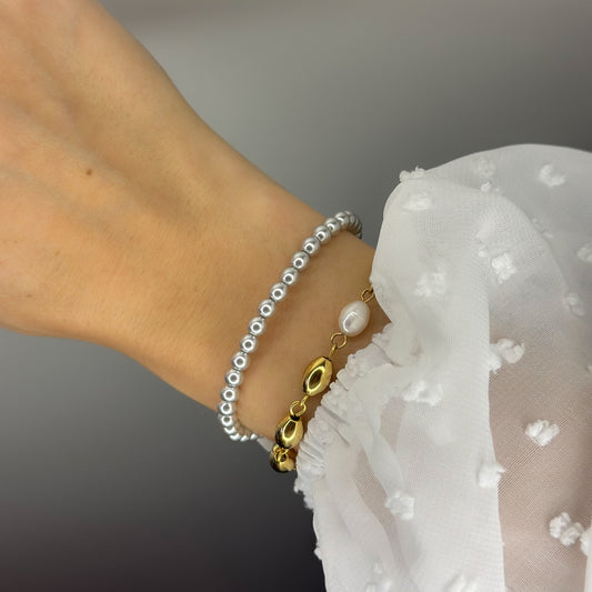 IšparduotaSiūlo apyrankė su perlu ir jolito akmenukais