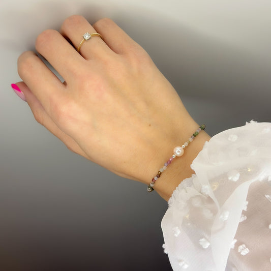 Siūlo apyrankė su perlu ir turmalino akmenukais