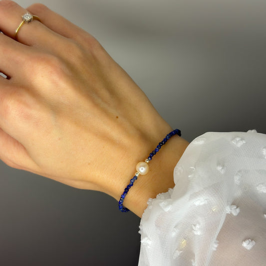 Siūlo apyrankė su perlu ir lazurito akmenukais