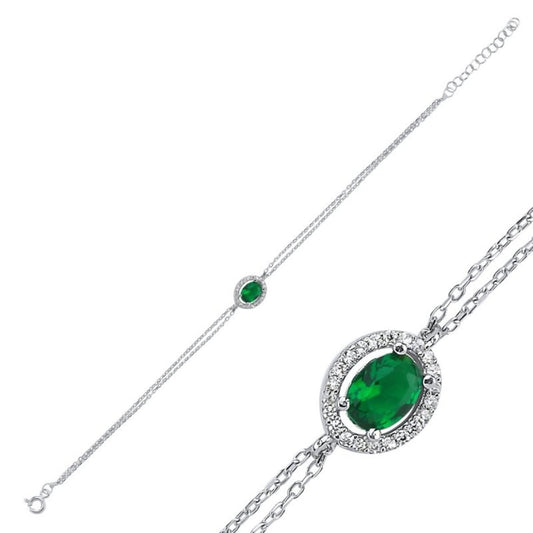 Sidabrinė rodžiuota apyrankė su ovaliu žaliu cirkoniu