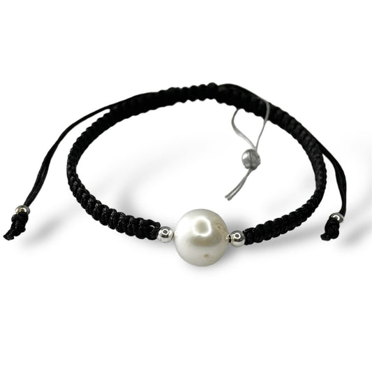 Siūlo apyrankė su sidabriniais karoliukais ir tikru perlu