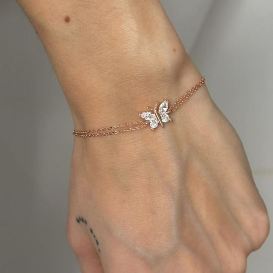 Sidabrinė paauksuota apyrankė su cirkonio drugeliu