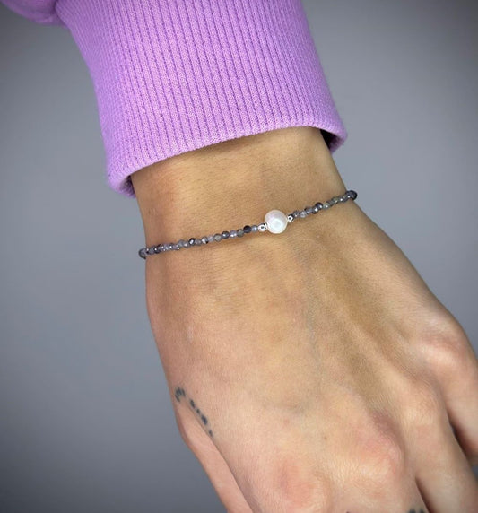 Apyrankė su labradorito akmenukais ir tikru perlu