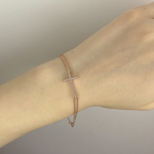 IšparduotaSidabrinė auksuota apyrankė su kryželiu
