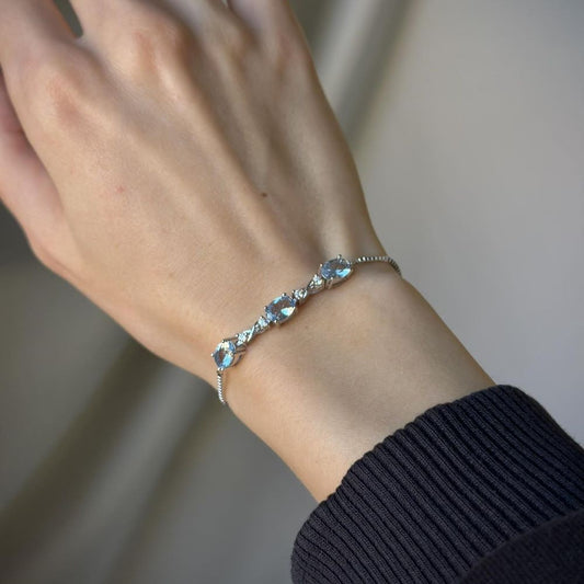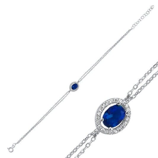Sidabrinė rodžiuota apyrankė su ovaliu mėlynu cirkoniu