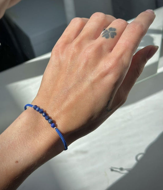 Siūlo apyrankė su sidabriniais karoliukais ir lazurito akmenukais