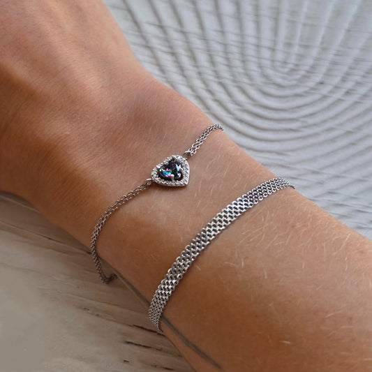Sidabrinė rodžiuota apyrankė su širdele
