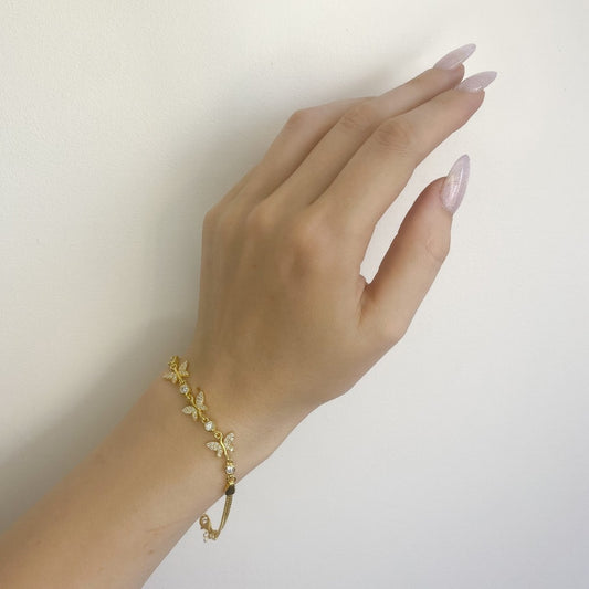 Sidabrinė auksuota apyrankė su drugeliais