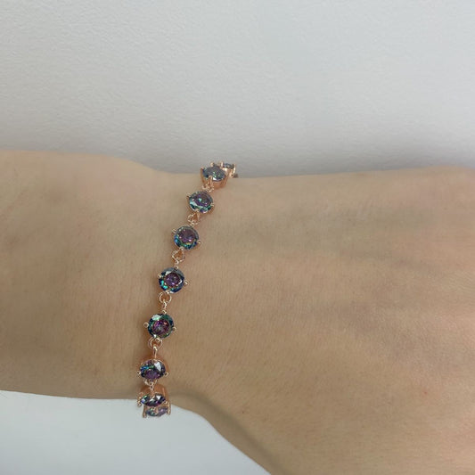 Sidabrinė paauksuota apyrankė su 11 mistinio topazo akmenėlių