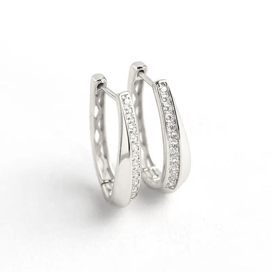 Sidabrinės rodžiuotos 2 cm ovalios rinkutės su cirkoniais