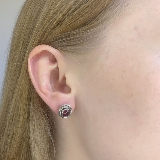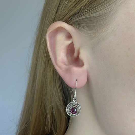 Granatas ¦ sidabriniai apvalūs auskarai su granato akmeniu