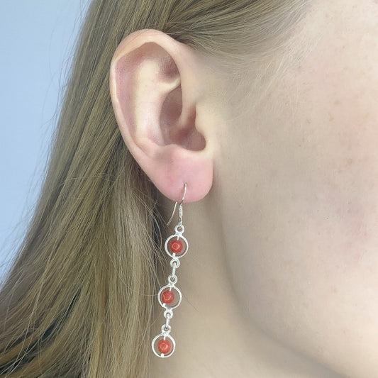 Sidabriniai kabantys auskarai su koralu