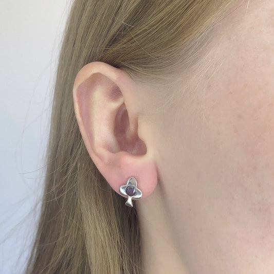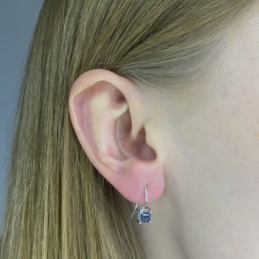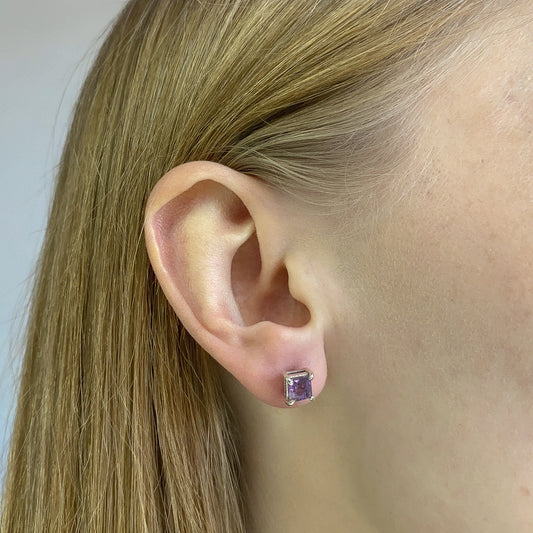 Sidabriniai auskarai su kvadratiniu ametistu