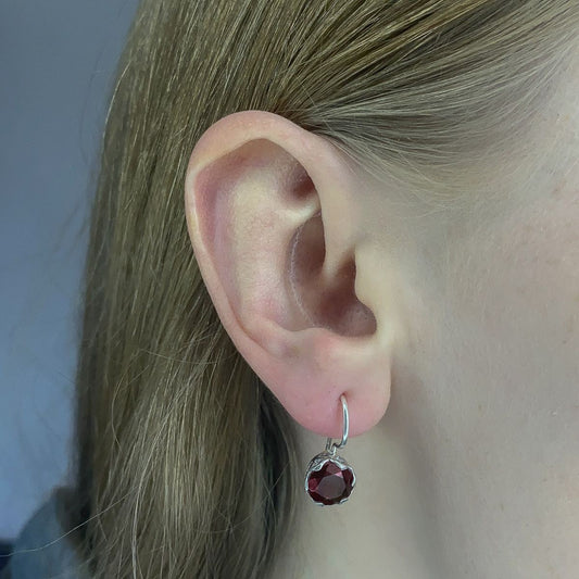 Granatas ¦ sidabriniai apvalūs kabantys auskarai su granatu