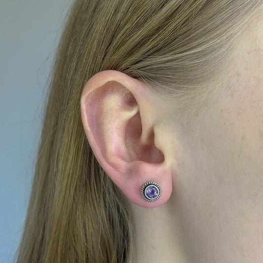 Ametistas ¦ sidabriniai auskarai su apvaliu ametisto akmeniu