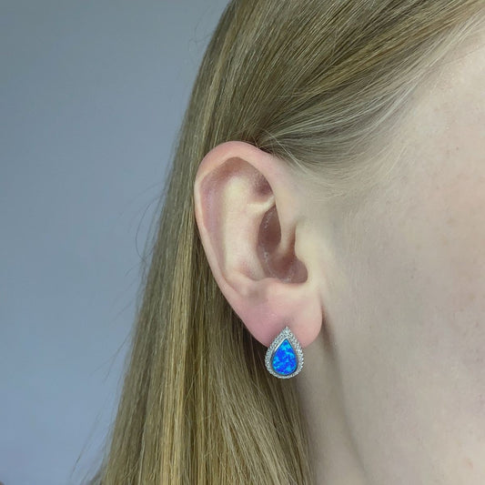 Sidabriniai rodžiuoti lašo formos auskarai su opalu angl. užsegimu