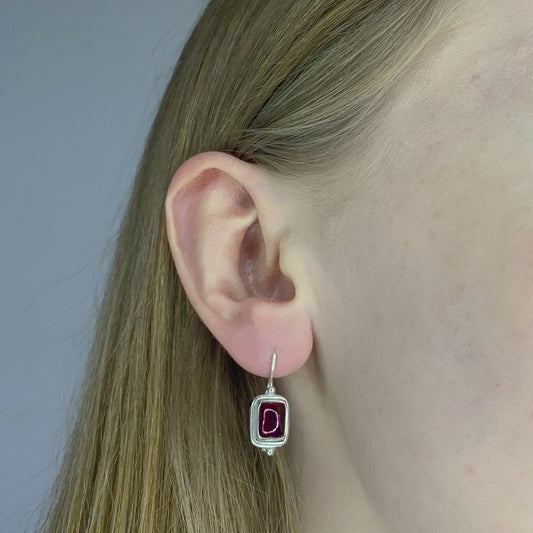 Sidabriniai stačiakampiai auskarai su granato akmeniu