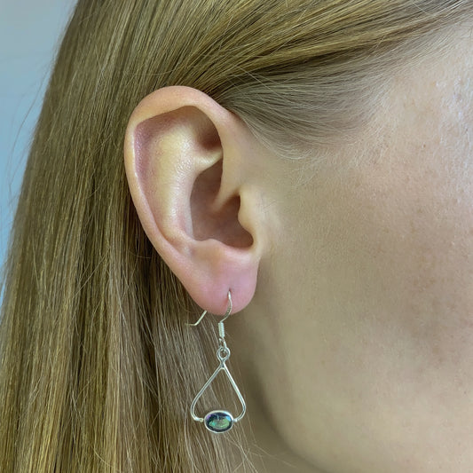 Sidabriniai kabantys auskarai su ovaliu mistiniu topazu