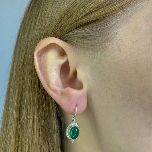 Sidabriniai auskarai su ovaliu žaliuoju oniksu