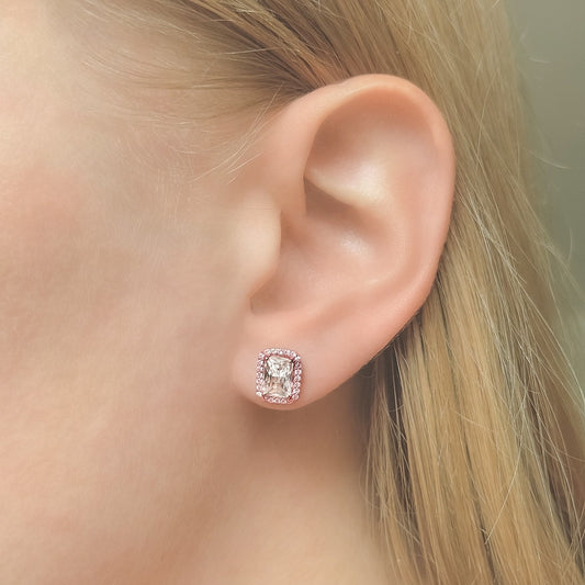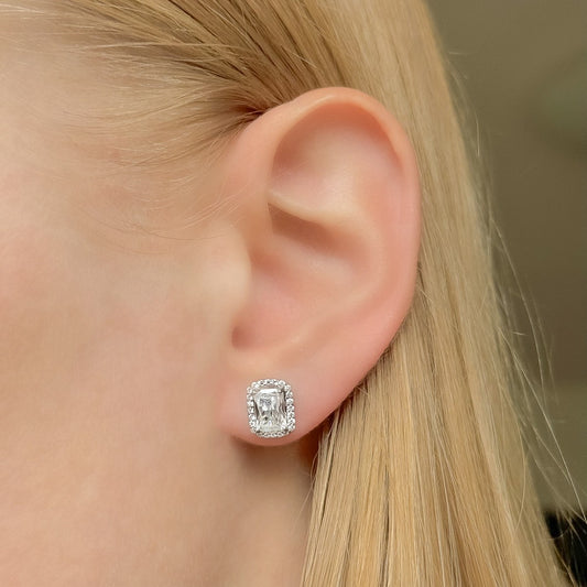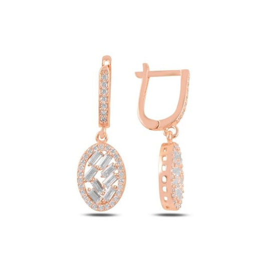 Sidabriniai rodžiuoti stačiakampiai auskarai su cirkoniu