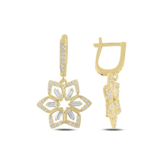 Sidabriniai auksuoti kabantys auskarai angl. užsegimu ir cirkonio gėlyte