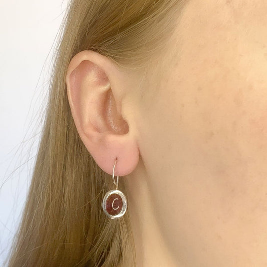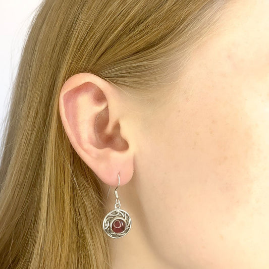 granatas ¦ sidabriniai apvalūs kabantys auskarai su granatu