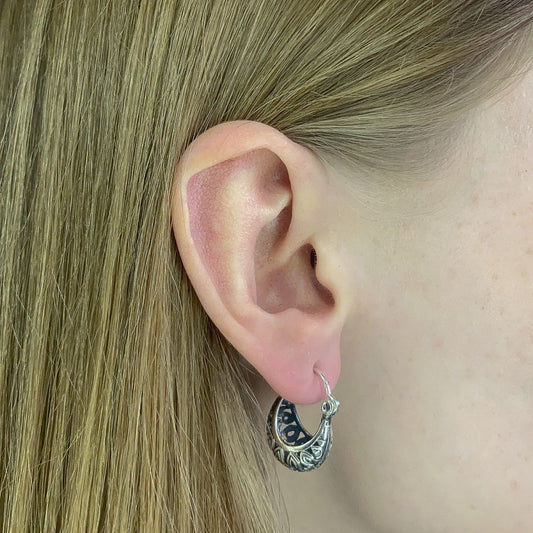 Kabantys sidabriniai auskarai su ornamentais