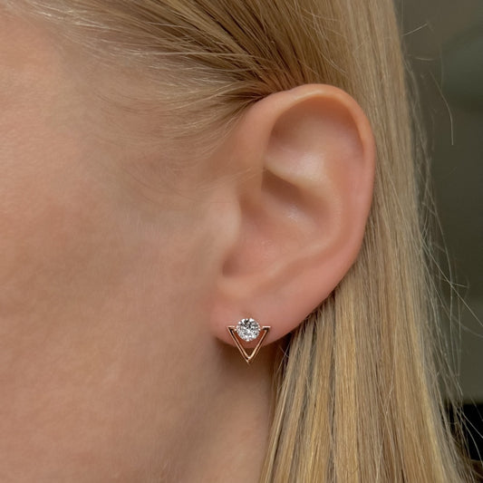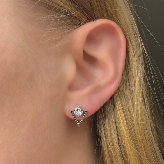 Sidabriniai rodžiuoti V raidės formos auskarai su cirkoniais