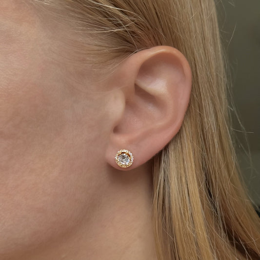 IšparduotaSidabriniai paauksuoti auskarai su cirkoniu