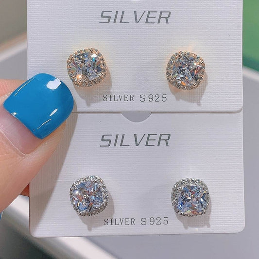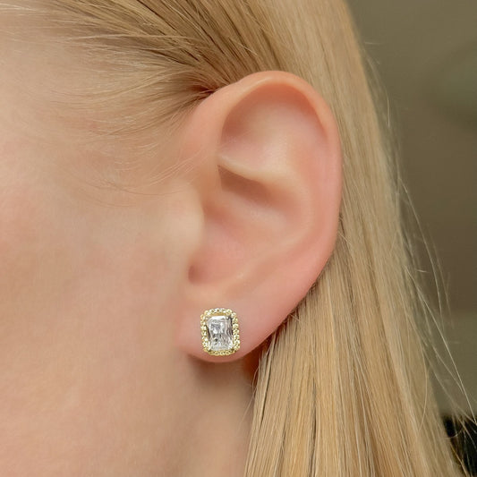Sidabriniai paauksuoti kvadratiniai auskarai su cirkoniu