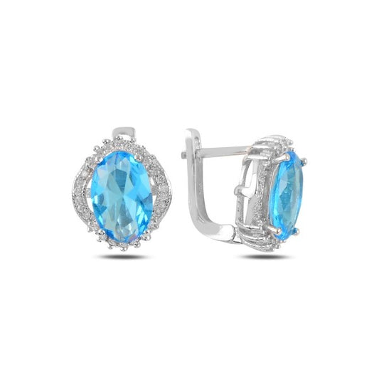 Sidabriniai rodžiuoti auskarai su žydru cirkoniu
