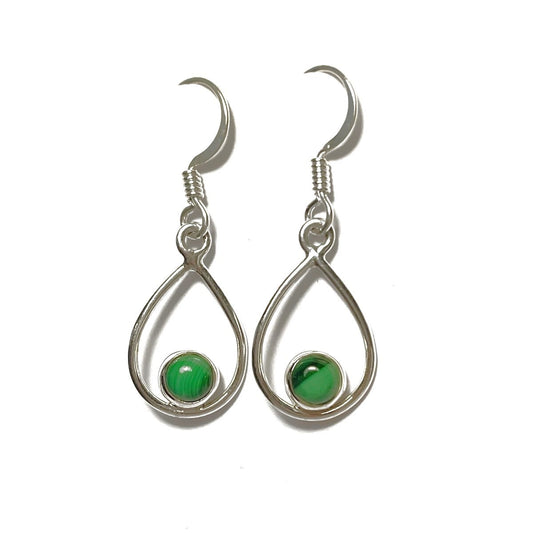 Sidabriniai kabantys auskarai su malachitu