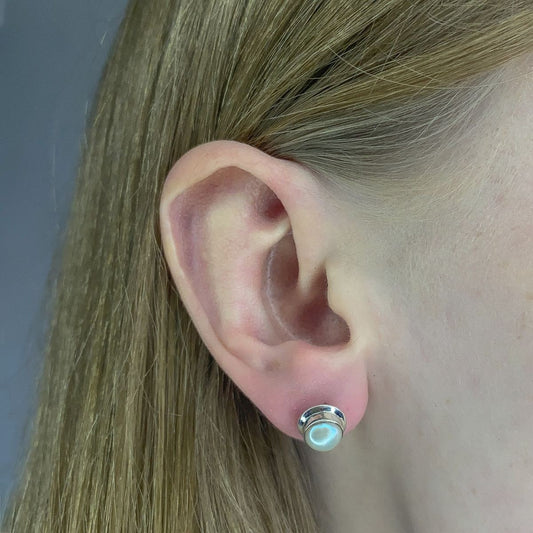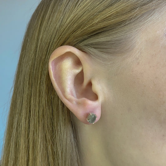 Sidabriniai auskarai su ovaliu labradoritu