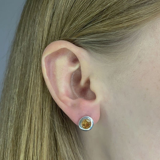 citrinas ¦ sidabriniai auskarai su apvaliu citrino akmeniu