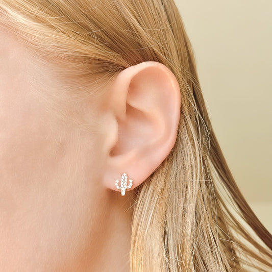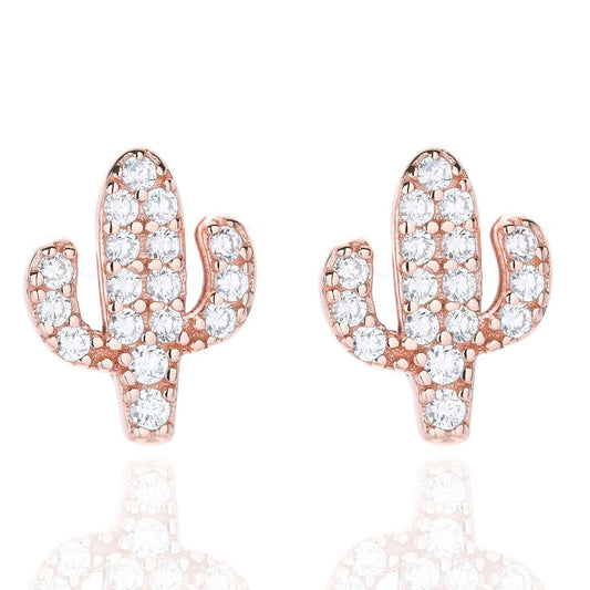 Sidabriniai rodžiuoti auskarai kaktusai su cirkoniais