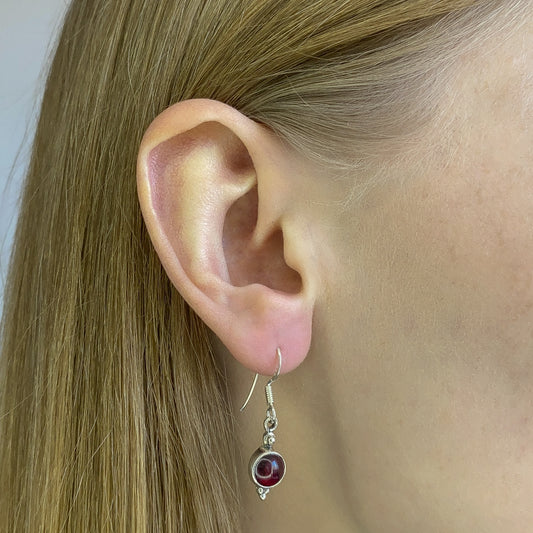 Sidabriniai kabantys auskarai su granatu