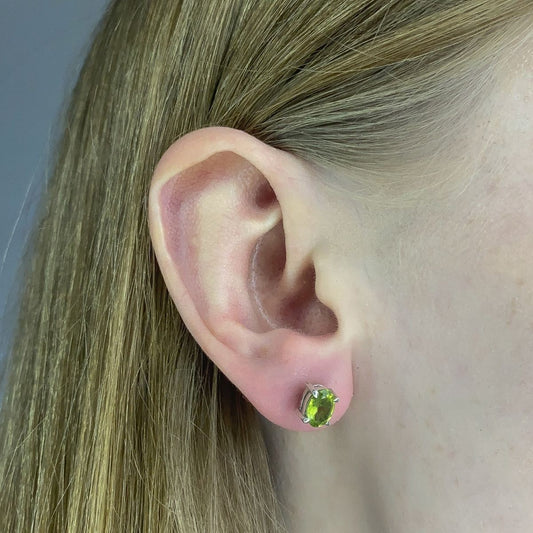 Sidabriniai auskarai su ovaliu peridotu