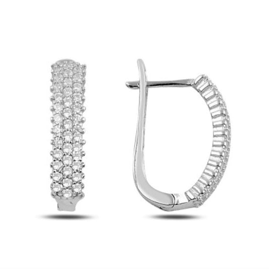 Sidabriniai auskarai su 3 eilėmis cirkonių angl. užsegimu