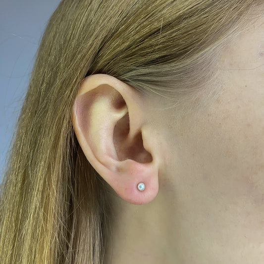 Sidabriniai rodžiuoti 3 mm vinukai su tikru perlu