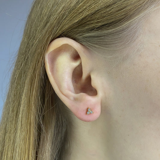Sidabriniai rodžiuoti 4-6 mm užsukami auskarai su baltu cirkoniu